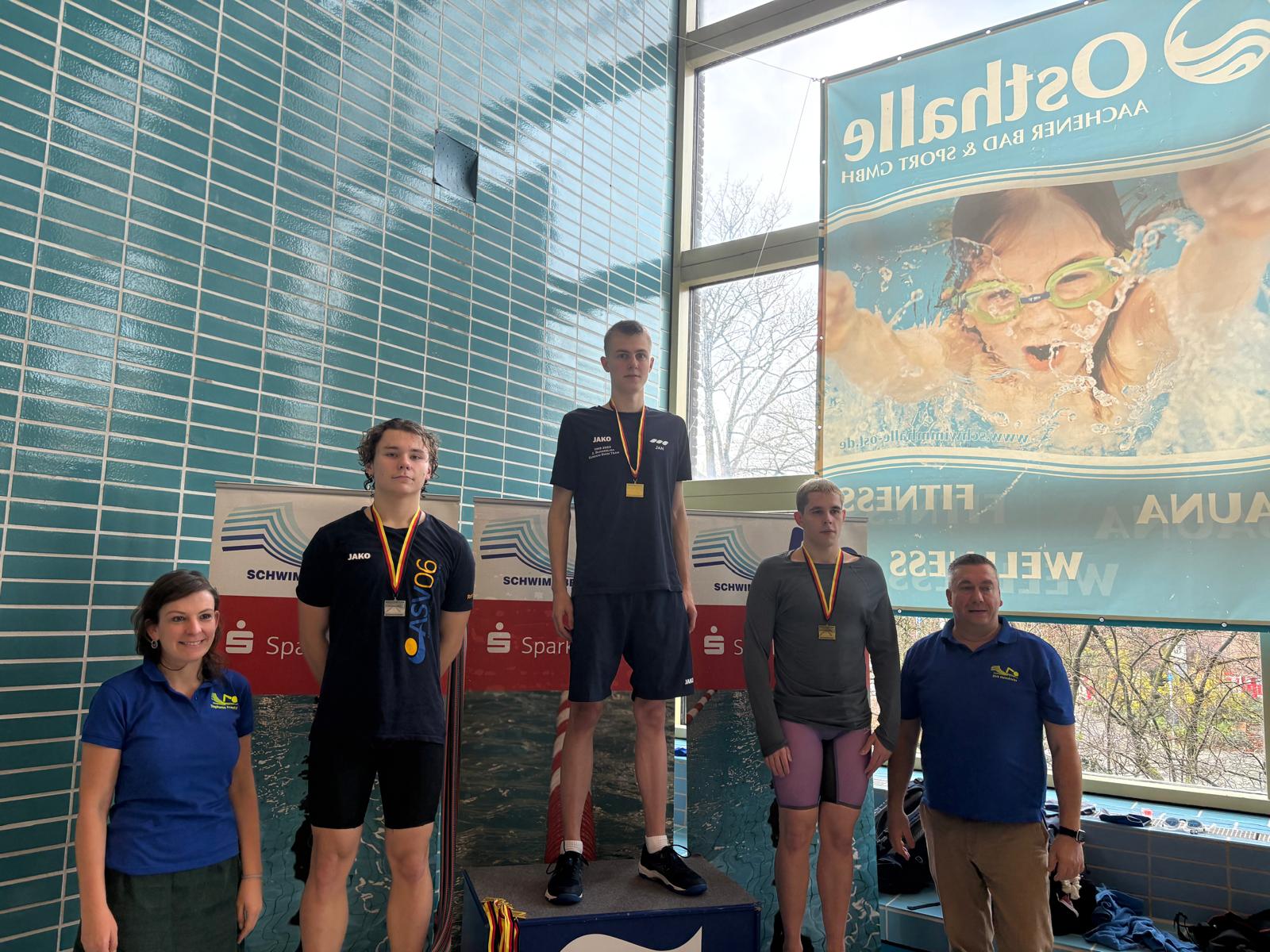 Aus dem Schwimmbezirk Aachen starteten drei Schwimmerinnen und vier Schwimmer in Singapur. Sabine Zimmermann (AK 35, Aachener SV 06), die sich gemeinsam mit Lukas und Lara unter den Fittichen von Trainer Stephan Zehrer vorbereitet hatte, gewann zweimal Gold (800 m Freistil, 400 m Lagen), einmal Silber (200 m Freistil) und einmal Bronze (400 m Freistil). Lara Vroels (AK 25, Wasserfreunde Delphin Eschweiler) holte Bronze über 100 Meter Schmetterling. Wolfgang Heuer (AK 60, SV Übach-Palenberg), Kai und Ute Kremer (AK 50/45, SG Erkelenz-Hückelhoven) und Patrick Riedl (AK 40, Eschweiler) waren erfolgreich mit von der Partie.