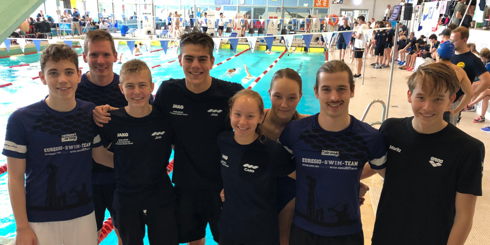 Im Sog der internationalen Schwimmfreaks testeten unsere Wettkampfschwimmerinnen und -schwimmer Jan Faulwetter (Jahrgang 2008), Elias Lamberty, Jan Schacht (beide Jahrgang 2007), Jan Moritz Bogdol (Jahrgang 2006), Jonas Pes, Nikola Schubert, Carolin Bogdol (alle drei offene Klasse) motiviert ihre Form mit Blick auf die NRW-Kurzbahnmeisterschaften Anfang November.