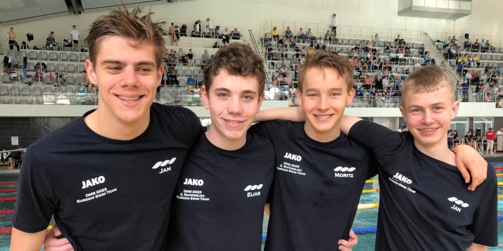 Mit Jan Moritz Bogdol, Jan Faulwetter, Elias Lamberty und Jan Schacht waren von der SG Euregio Swim Team ausschließlich Schwimmer bei den NRW-Jahrgangsmeisterschaften 2023 im Dortmunder Südbad am Start. Für insgesamt 16 Strecken hatten sich die Vier qualifiziert. Neunmal schwammen sie auf Urkundenränge (Plätze 1 bis 8) sowie unter die besten Zehn.