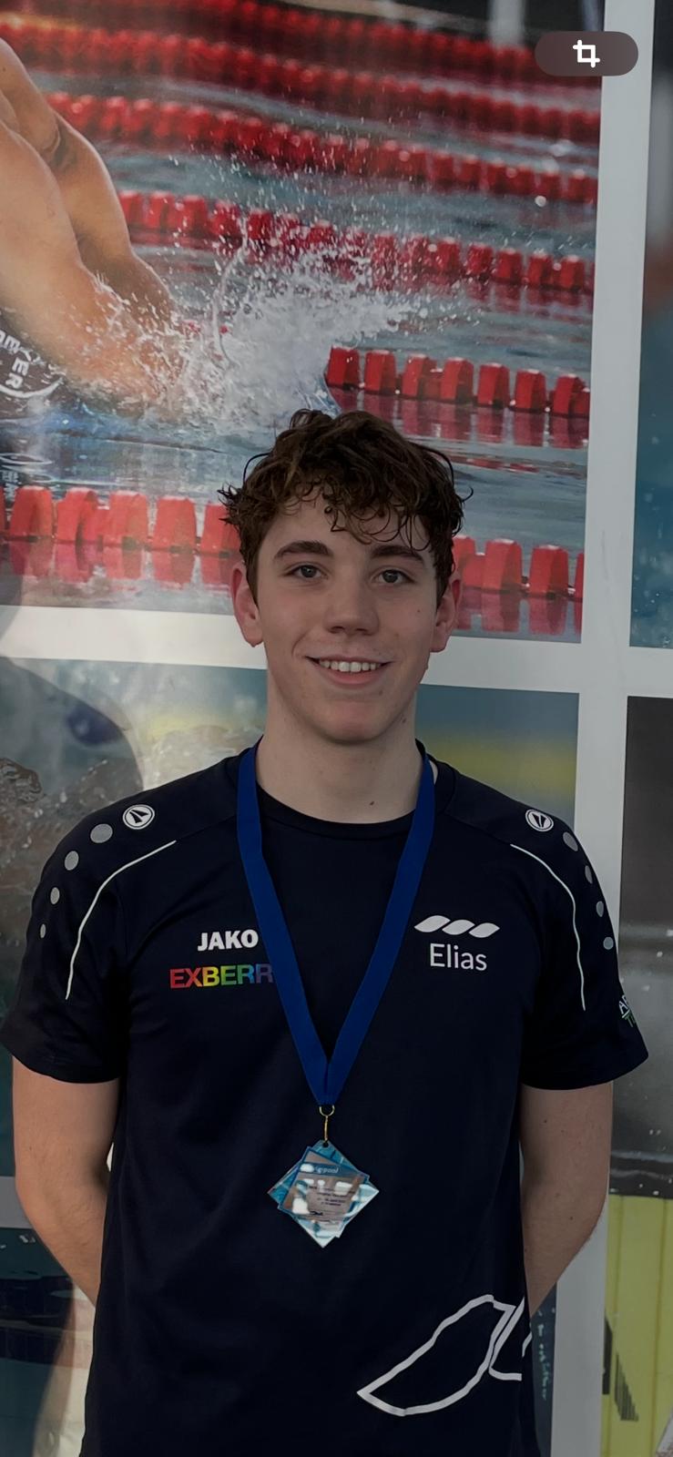 Da freute sich Elias (Jahrgang 2007) bei den NRW-Meisterschaften ganz besonders über seinen ersten Sprung aufs Podest der Landesebene. In 02:31,41 Minuten schmetterte er über 200 Meter zur Bronzemedaille in der Juniorenwertung. Über 400 Meter Freistil schwamm er auf Platz 7. In dieser Gruppe punktete auch Jan Schacht (Jahrgang 2007) über 50 Meter Freistil, 50 Meter Schmetterling und 100 Meter Freistil. Als Zehnter landete Jan über die längere Freistildistanz im Ranking der Top-Ten.