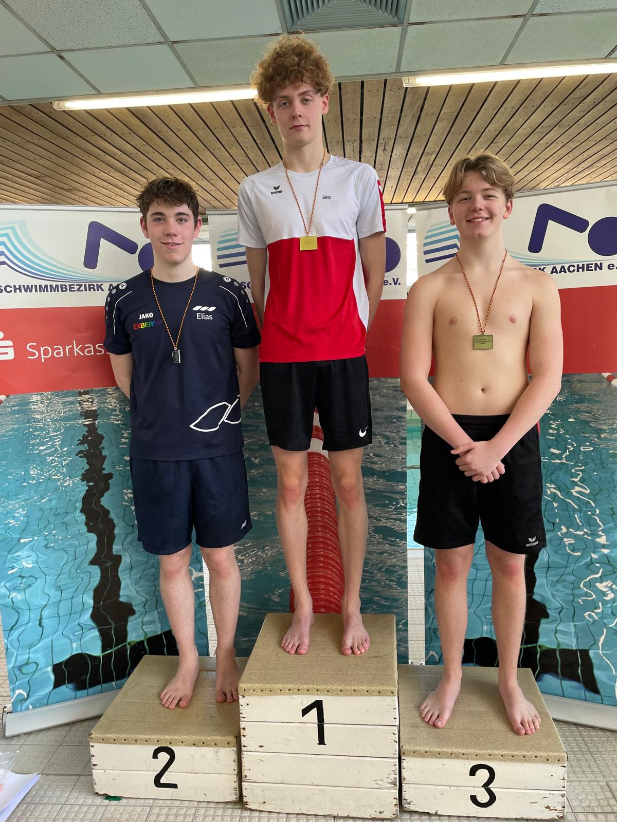 Wie sollte es anders sein: Lukas Bücker stand bei den Bezirksmeisterschaften „Lange Strecken“ in der offenen Klasse bei den Freistilstrecken als Sieger ganz oben auf dem Podest. Gold gab es für ihn über in 800 Meter Freistil in 08:39,80 Minuten und 1500 Meter Freistil in 16:25,05 Minuten. Den Titel über 400 Meter Lagen gab Lukas an Tim Faulwetter weiter, der in 04:45,76 Minuten zum Sieg schwamm. Über 800 Meter Freistil gesellte sich Tim mit Silbermedaille zu Lukas aufs Treppchen und über 1500 Meter Freistil Elias Lamberty (Jahrgang 2007), der sich über Bronze in der offenen Klasse freute. Lea Bayer holte Gold über 800 Meter Freistil im Jahrgang 2011 sowie Silber über 400 Meter Lagen. Zweimal Silber in der Jahrgangswertung (400 Meter Lagen, 1500 Meter Freistil) erschwamm Elias. Jan Schacht (Jahrgang 2007) belegte den Bronzeplatz über 400 Meter Lagen.