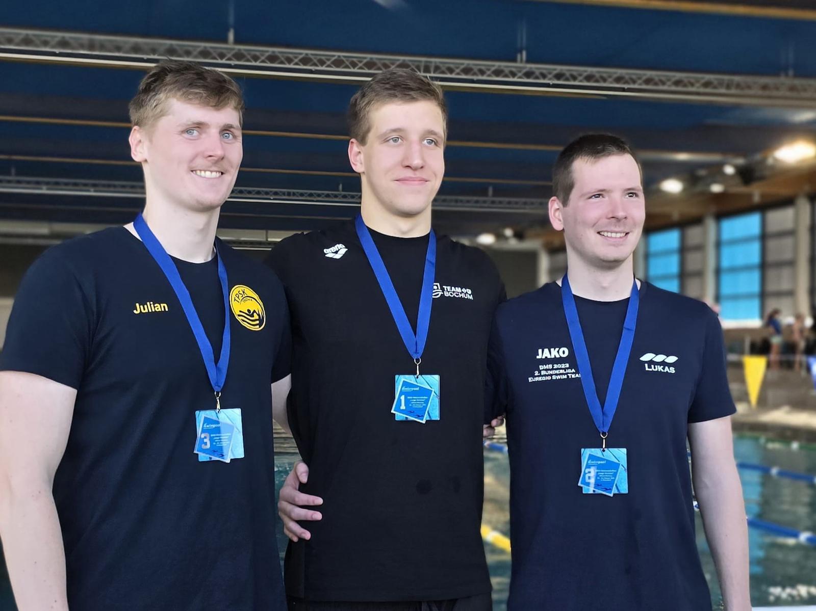 Unter den ersten Zehn auf Landesebene landeten Jan Faulwetter (Jahrgang 2008, 400 Meter Lagen, Platz 4) und Elias (1500 Meter Freistil, Platz 5, 800 Meter Freistil und 400 Meter Lagen jeweils Platz 7).